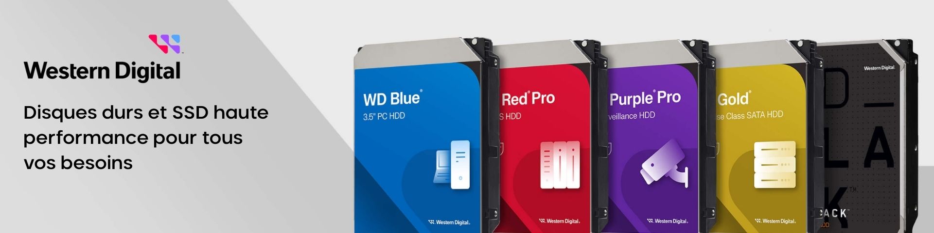 Western Digital, fondée en 1970 aux États-Unis, est spécialisée dans le stockage et les disques durs. La marque est reconnue pour la performance, la fiabilité et l’innovation de ses solutions de stockage