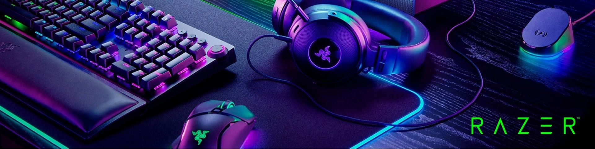 Razer, fondée en 2005 aux États-Unis, est spécialisée dans le gaming et les périphériques haut de gamme. La marque propose claviers, souris, casques et accessoires combinant design, performance et innovation
