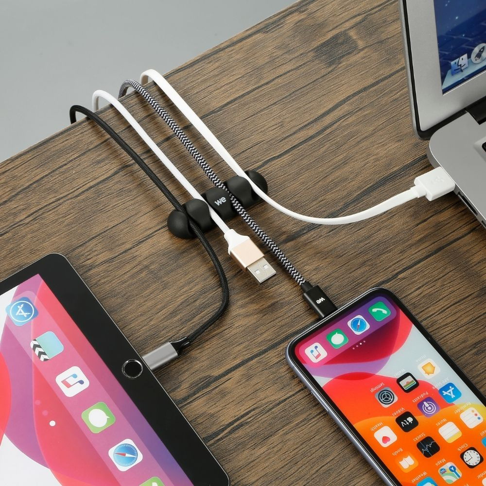 WE Organisateur de cbles pour bureau ou voiture - 4 emplacements x 2pcs - en silicone - coloris noir