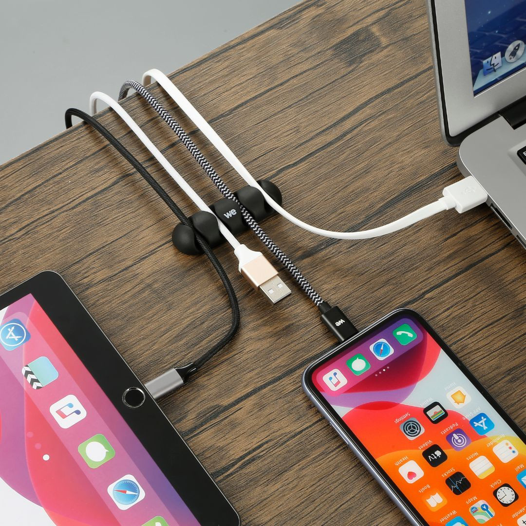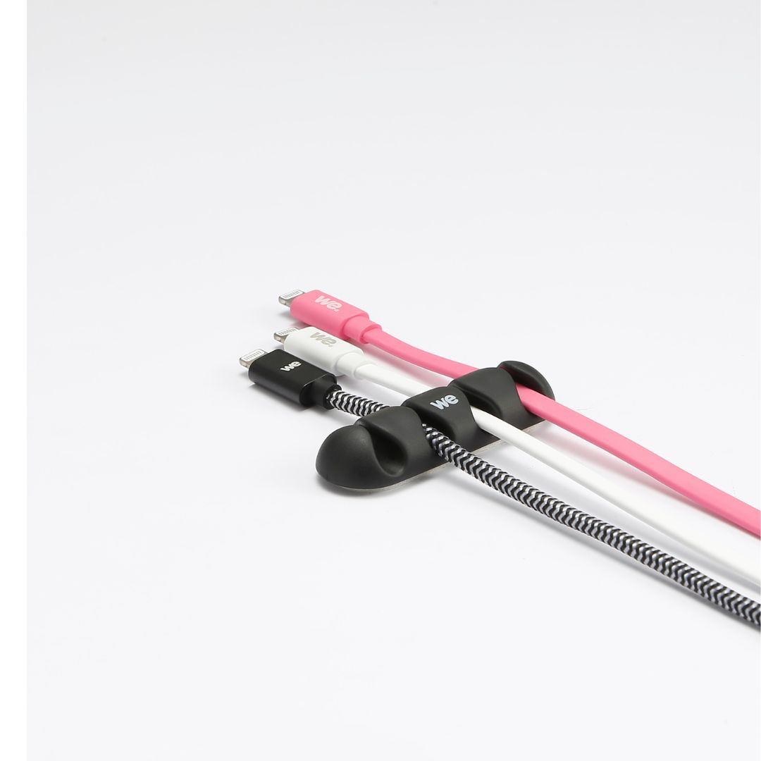 WE Organisateur de câbles pour bureau ou voiture - 4 emplacements x 2pcs - en silicone - coloris noir
