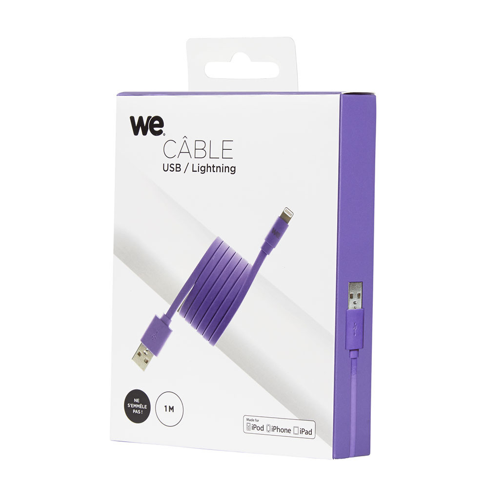 Ce cble plat WE USB/Lightning vous permet de brancher vos appareils Apple avec un port Lightning. Il permet de charger et synchroniser vos appareils.