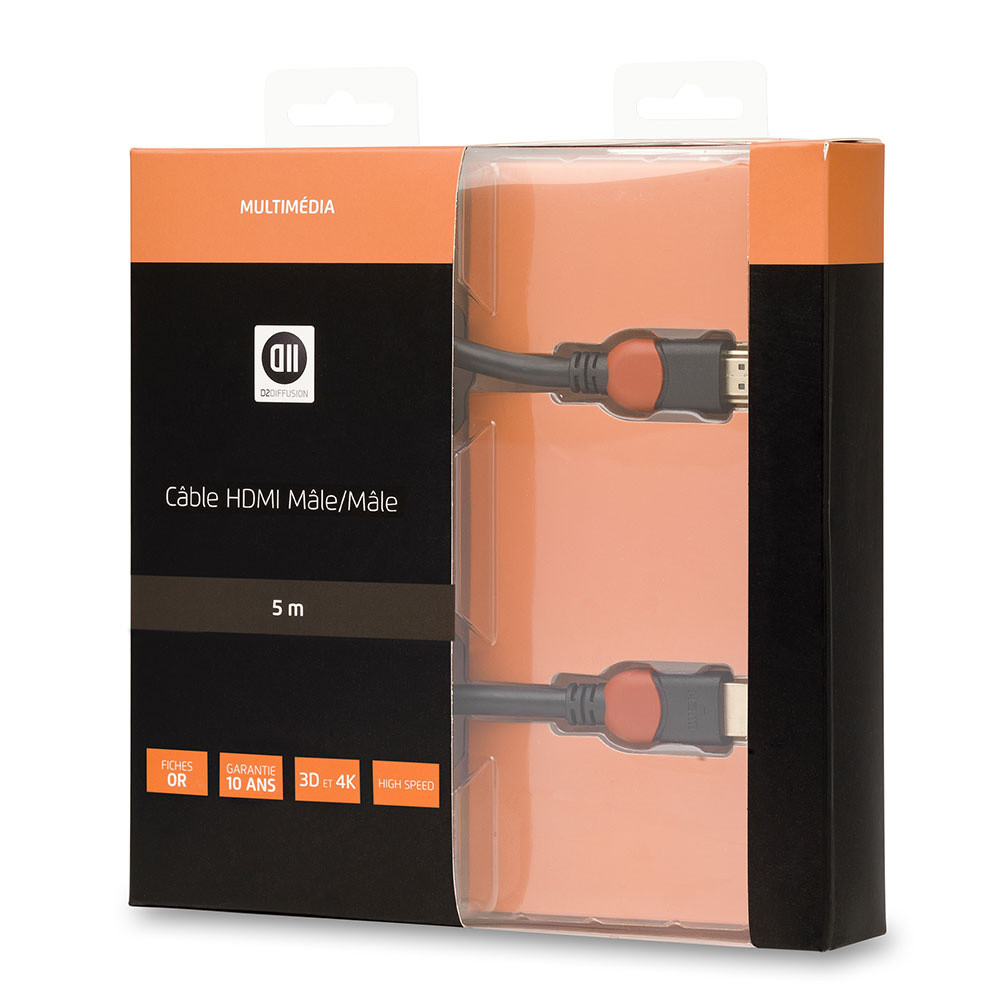 Cble High Speed HDMI 1.4 mle/mle D2 Diffusion d'une longueur de 5 mètres.