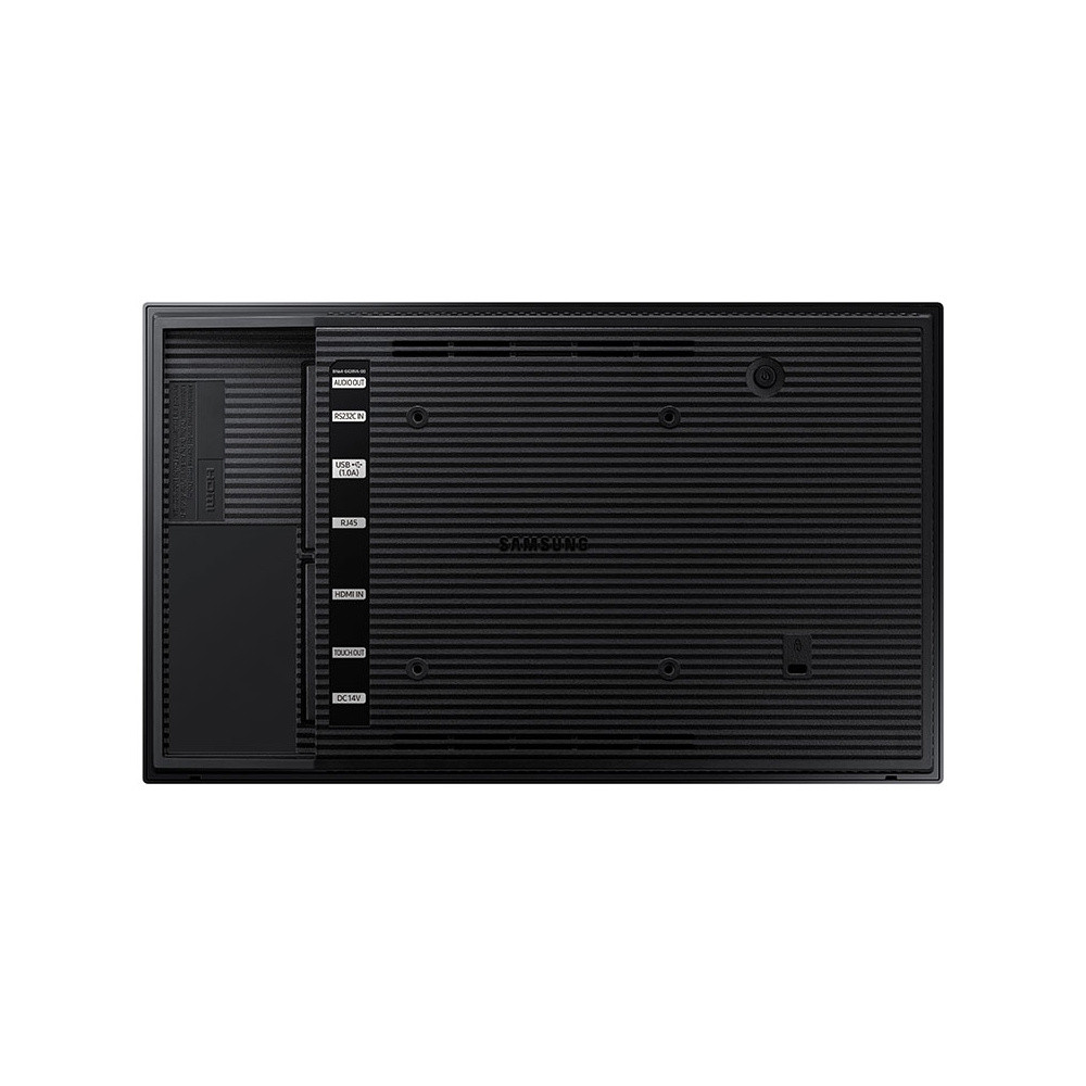 Professional Display QB13R-T Écran tactile intuitif (10 points Multi-Touch) pour une communication interactive avec le client 1.920 x 1.080 FHD résolution FHD résolution FHD pour un contenu net et clair Solution tout-en-un puissante (Tizen 4.0) et plateforme de sécurité Samsung KnoxUn engagement optimisé assorti d'une interaction intuitiveLe petit écran tactile QB13R-T de Samsung offre une expérience magasin unique et améliore l'engagement client en présentant les contenus juste sous les yeux dans un design compact. Conçu pour un usage professionnel, il permet une exploitation efficace des contenus et garantit des performances fiables pour n'importe quelle utilisation commerciale.Des capacités tactiles rapides et efficacesAvec sa fonctionnalité tactile capacitive intégrée, le QB13R-T offre une expérience conviviale. Sa technologie tactile à 10 points de contacts et son temps de réponse rapide offrent une interface intuitive qui permet une recherche et une action axées sur les besoins du client, créant de nouvelles interactions client et stimulant les achats.Des contenus parfaitement nets et lisiblesL'écran bénéficie d'une résolution FHD (1920 x 1080 pixels), permettant ainsi l'affichage de contenus nets et faciles à lire. De plus, la dalle antireflet assure une visibilité parfaite de l'écran, quelle que soit la luminosité ambiante. Ces fonctionnalités innovantes s'accompagnent d'un fonctionnement fiable 16 heures par jour, 7 jours par semaine, adapté à un usage professionnel.Un design fin et intelligentLe design fin et compact du QB13R-T permet une utilisation efficace de l'espace, même dans les endroits exigus. Doté d'un dos élégant, cet écran se prête aussi bien à une installation au mur que tout simplement posé sur un meuble, tout en offrant une connectivité, une lecture de contenus et un pilotage extrêmement faciles.Une lecture efficace des contenusBasée sur TIZEN, la solution MagicINFO S Player intégrée au QB13R-T permet une lecture fluide et efficace des contenus sans lecteur multimédia externe. La plateforme SSSP facilite en outre le déVéloppement de contenus grâce à une compatibilité renforcée avec plusieurs formats Web.Une configuration entièrement sécuriséeLe puissant système Knox offre une sécurité rigoureuse à trois couches, assurant ainsi une protection étanche au niveau de l'application, de la plateforme et du système, tout en limitant l'accès aux contenus et au matériel. De plus, le contrôle à distance du réseau et des ports USB empêche tout accès non autorisé.Un contrôle facile des écransgrâce au récepteur infrarouge (IR) central, chaque écran reçoit les signaux IR à travers sa dalle, ce qui permet un pilotage à distance facile et pratique, même dans le cas d'une installation sur mesure. Une fois installé, l'écran ne nécessite pas d'extension de cblage du récepteur IR. Le Wi-Fi intégré permet une gestion à distance sans fil des contenus et des écrans.Un fonctionnement et des performances fiablesLe QB13R-T est conforme aux normes CEM (compatibilité électromagnétique) pour les équipements de classe B et répond aux normes strictes de sécurité et de fiabilité pour l'exploitation. En outre, sa classification IP5x garantit des performances durables, même dans les environnements poussiéreux.
