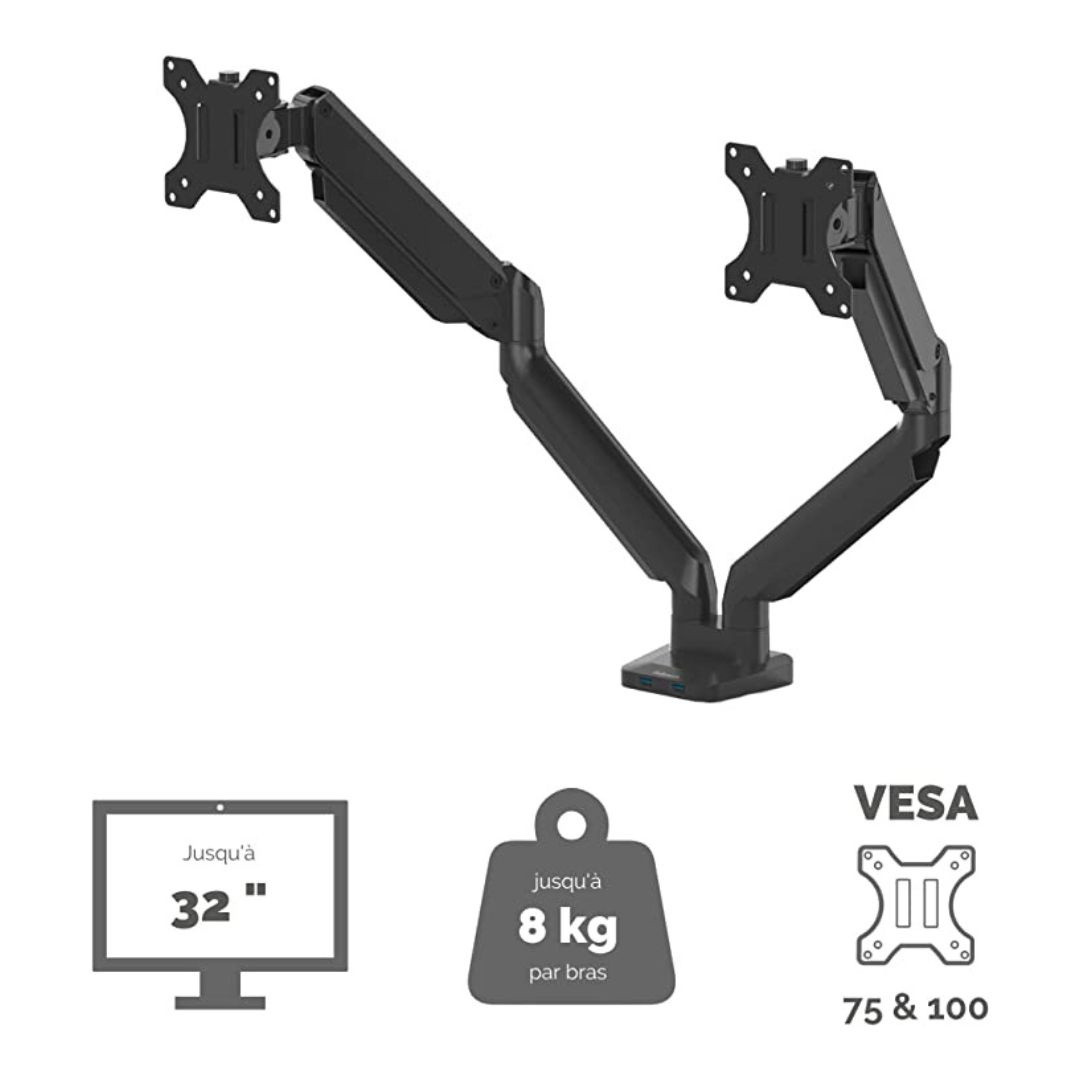 - Kit de montage bras réglable pour 2 moniteurs
